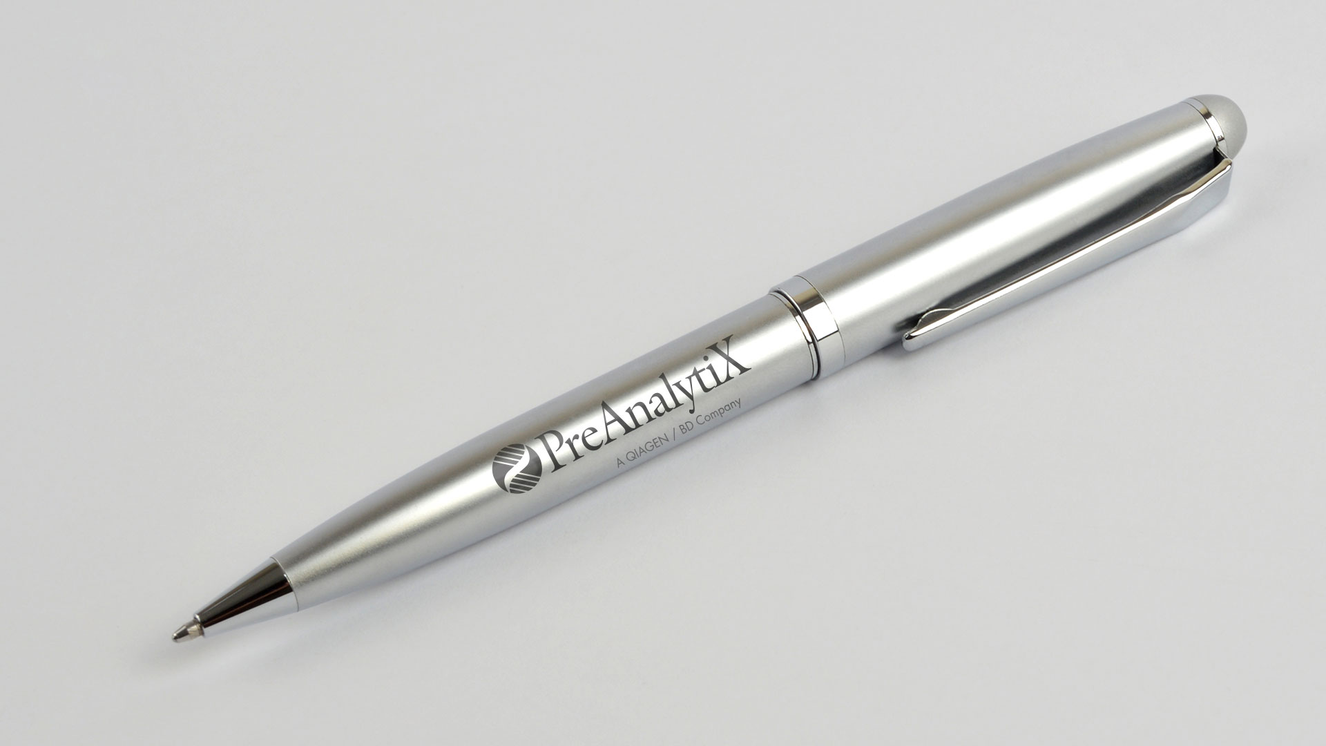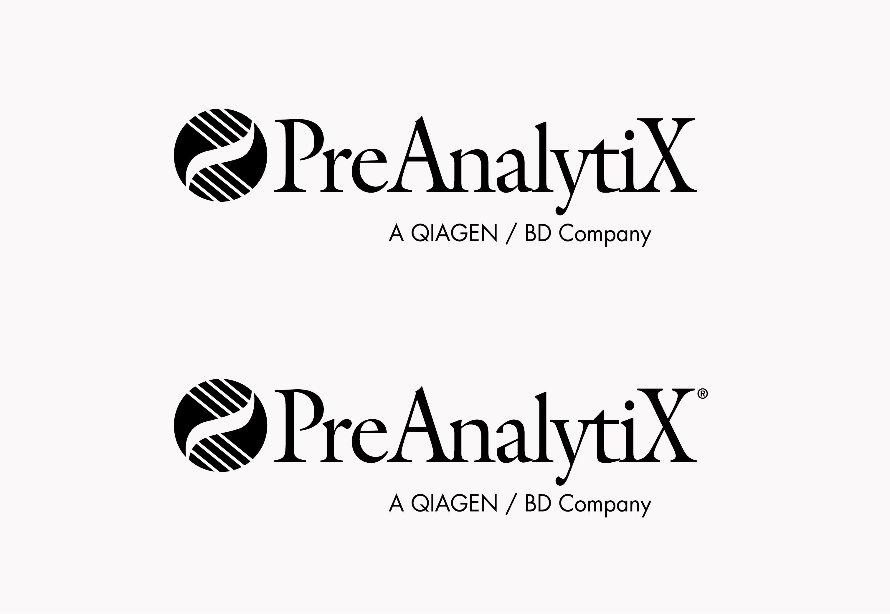 The PreAnalytiX logo is normally used without the ® (registered trademark) symbol. However, as the trademark has been registered in America, the logo is used with the symbol for all media used there.